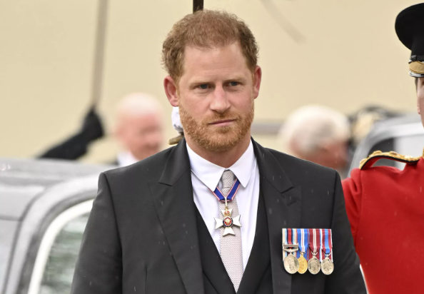 해리 왕자가 2023년 5월 6일 런던에서 찰스 왕세자와 카밀라 왕비의 대관식을 위해 도착합니다.