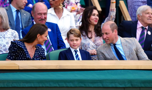 2022년 7월 윔블던 센터 코트의 로얄 박스에 모인 윌리엄 왕자, 케이트 공주, 조지 왕자.