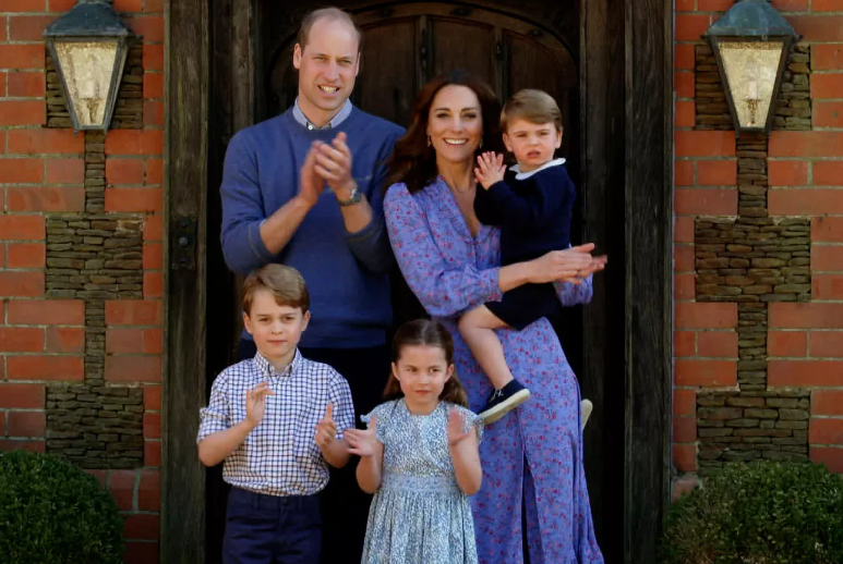 윌리엄, 조지, 샬롯, 루이스는 캐주얼한 옷차림에 밝은 미소를 지으며 여유로운 모습이었고, 루이스는 심지어 장난스럽게 아빠의 어깨에 앉기도 했습니다.