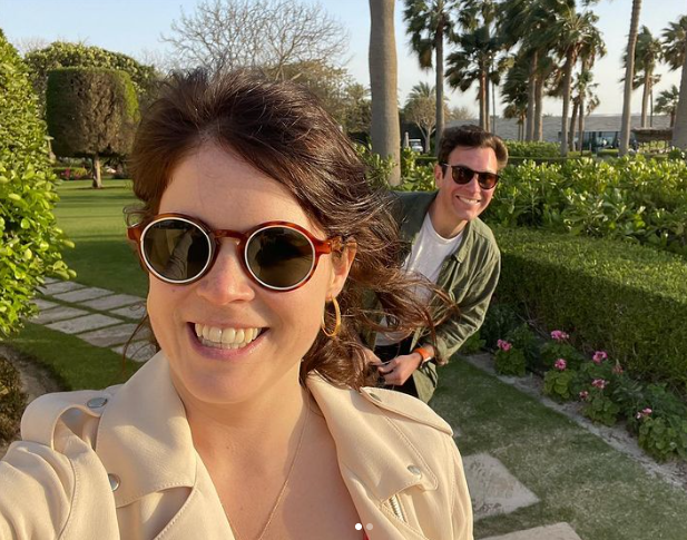 사라 퍼거슨은 2023년 7월에 진행된 자신의 팟캐스트 ' 공작부인과 사라와의 티 토크' 에서 유제니 공주가 남편 잭 브룩스뱅크 와 사이에서 낳은 아들 아우구스트 와 어니스트와 함께 포르투갈에 있다고 밝혔습니다 .