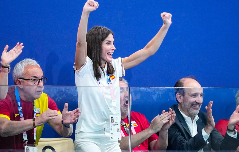 레티지아 여왕은 7월 31일 올림픽 5일차에 열린 스페인과 그리스의 워터폴로 경기 여자 예선전에서 좌석에서 뛰어내렸습니다.