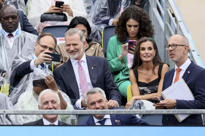 51세의 레티지아 여왕은 7월 26일 개막식에 남편과 함께 참석했는데, 나중에 두 사람은 비를 막기 위해 폰초를 꺼냈다.