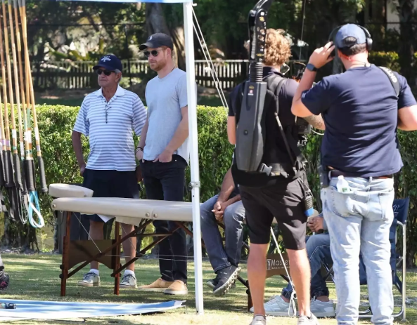 4월 13일, 서식스 공작(39세)이 플로리다주 웰링턴 국립 폴로 센터에서 영화 제작진과 함께 그와 메건 마클이 최근 발표한 스트리밍 플랫폼 프로젝트 중 하나의 장면을 포착하는 모습이 목격되었습니다.